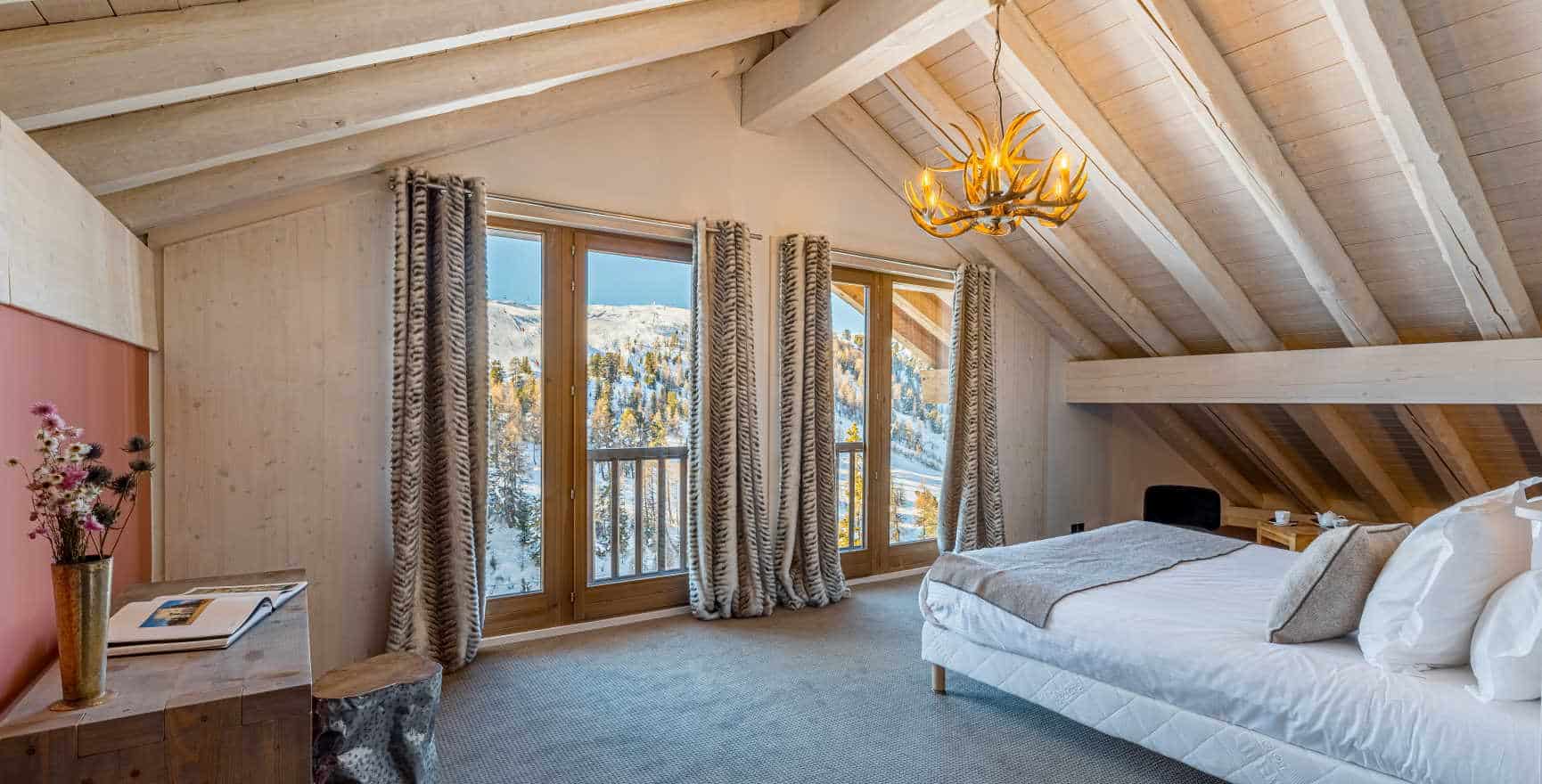 The chalet comprises 6 generous pastel-coloured rooms with an en-suite bathroom.