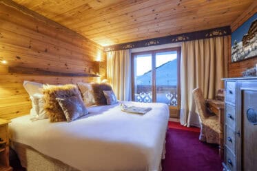 L’hôtel dispose de neuf types de chambres et suites chaleureuses à dominante de bois avec vue sur la station et les montagnes.