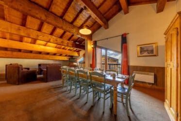 Appartement en duplex de 100m² pour 9 personnes composé d’un séjour avec cheminée, de 3 chambres avec lits jumeaux (possibilité de lit double sur demande), 1 chambre sous les poutres avec lits superposés et lit simple, 1 salle de bain, 2 salles d’eau, toilettes séparées ainsi qu’une cuisine ouverte avec plaques vitrocéramiques, four électrique, four micro-ondes, hotte, réfrigérateur, lave-vaisselle, cafetière électrique, bouilloire, grille-pain et équipements vaisselle.